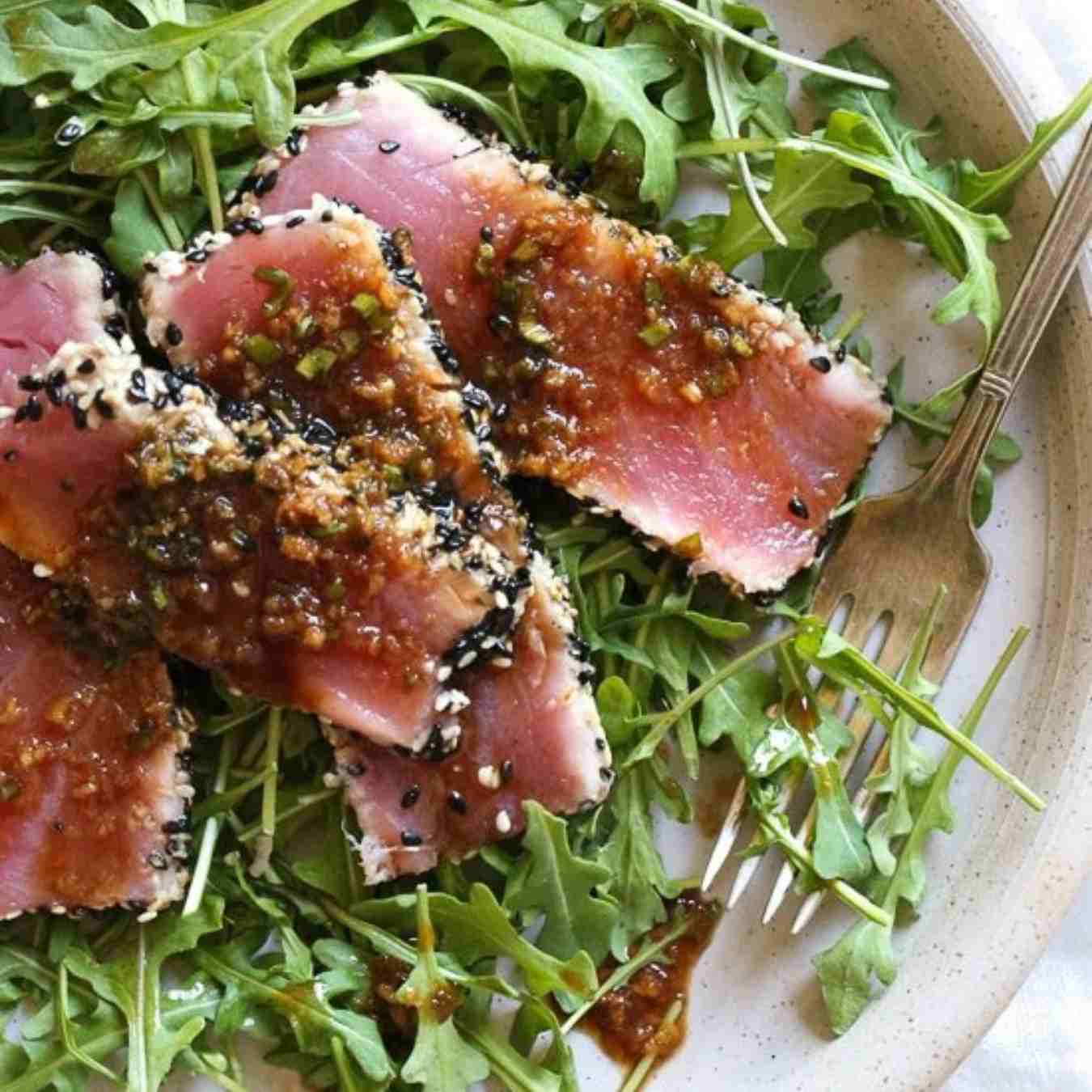Rưới hỗn hợp này lên các lát cá ngừ
