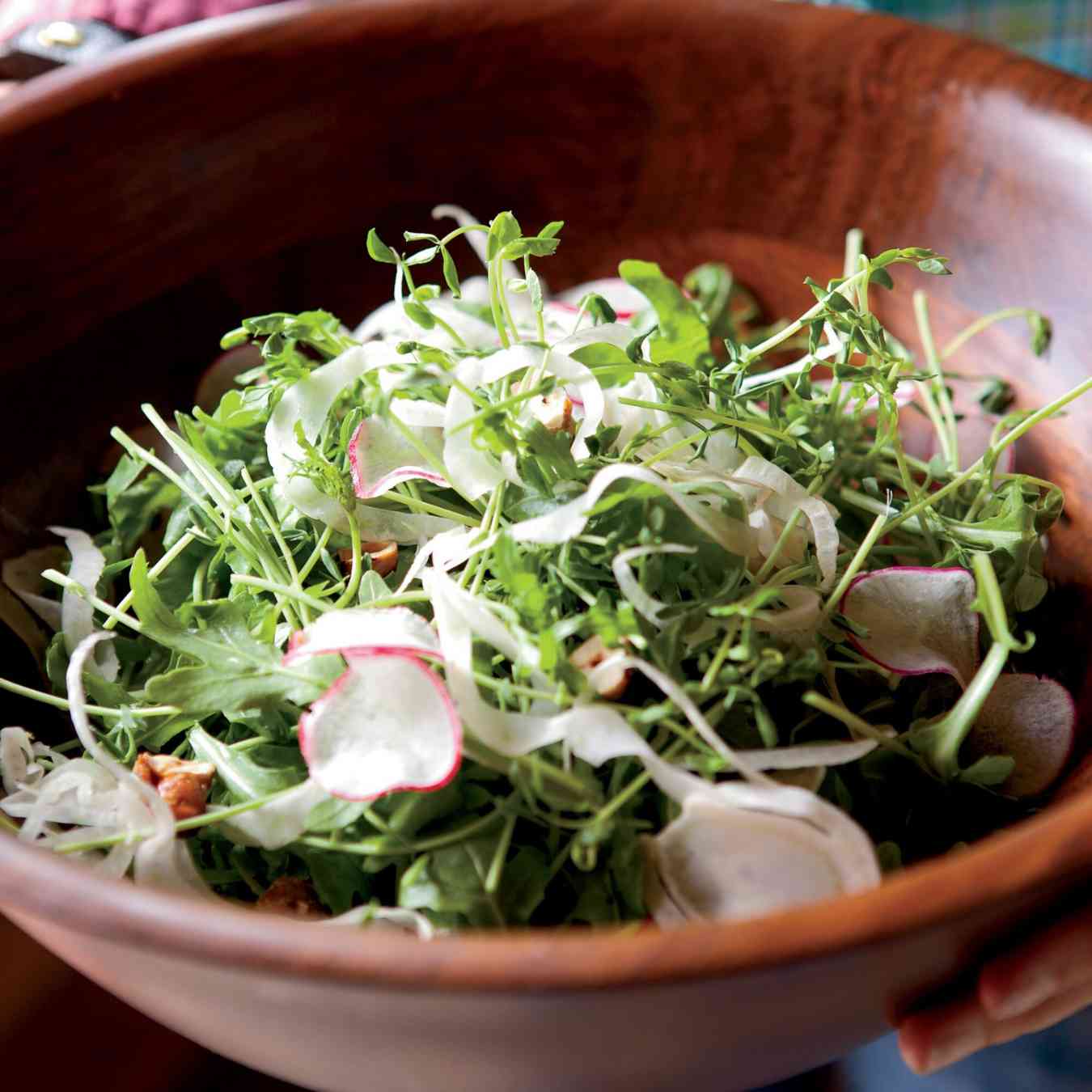 Dùng bát salad, trộn rau mầm với muối, tiêu, dầu mè, dầu hạt nho, sữa chua cốt dừa, phủ đều rồi chia ra bát và thưởng thức