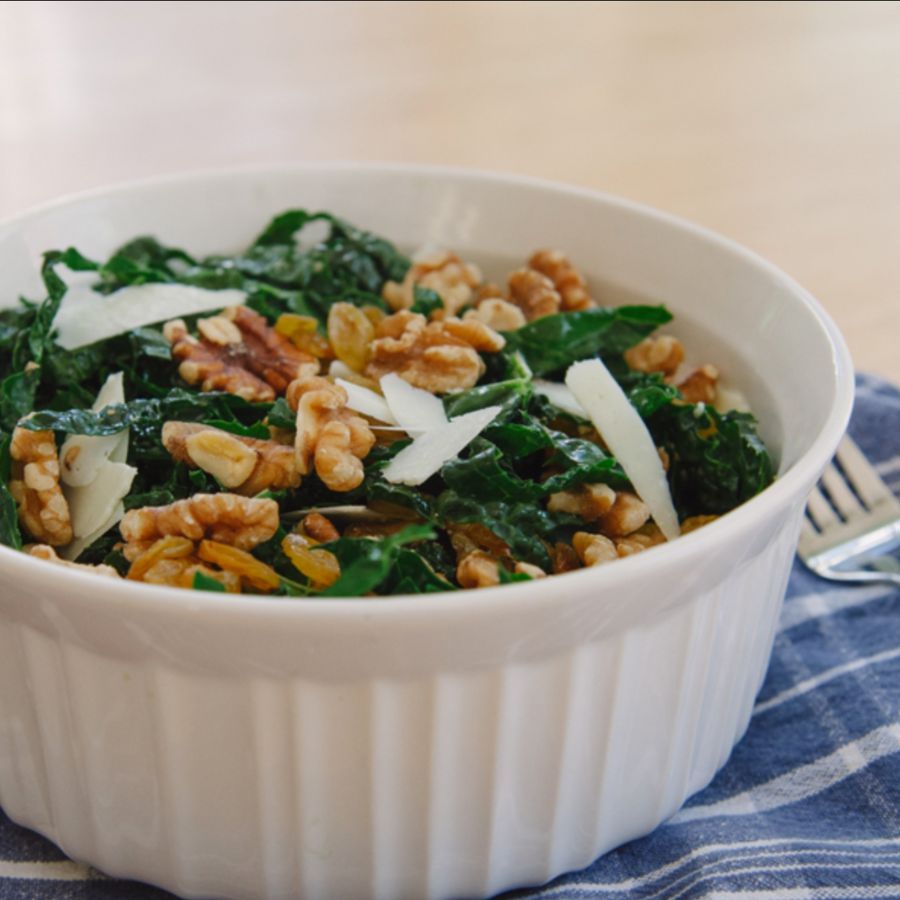 Dùng một cái bát, trộn cải xoăn với nụ bạch hoa, vỏ chanh, nước cốt chanh và các thành phần nguyên liệu khác, trộn đều và thưởng thức