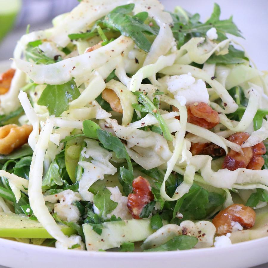 Dùng một cái bát, trộn hạt óc chó với các nguyên liệu còn lại, thêm nước sốt bạc hà ở trên, trộn đều và thưởng thức