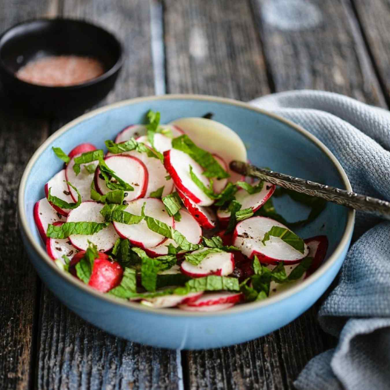 Dùng một cái bát, trộn củ cải với hành lá, dầu và các thành phần khác với nhau, trộn đều và thưởng thức