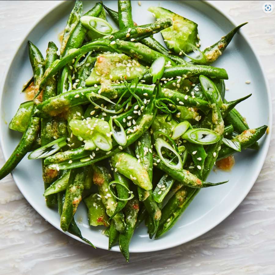 Dùng một cái bát, trộn đậu que với dưa chuột, dầu ăn và các nguyên liệu khác, trộn đều và thưởng thức
