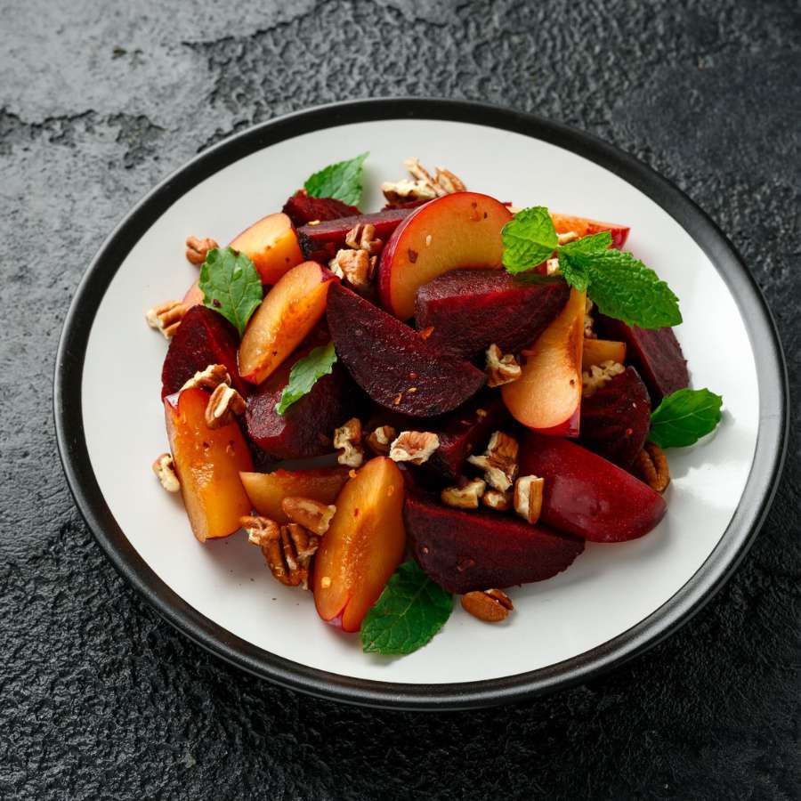 Dùng một cái bát trộn mận với hạt óc chó và các thành phần nguyên liệu, trộn đều, chia vào 2 bát và thưởng thức