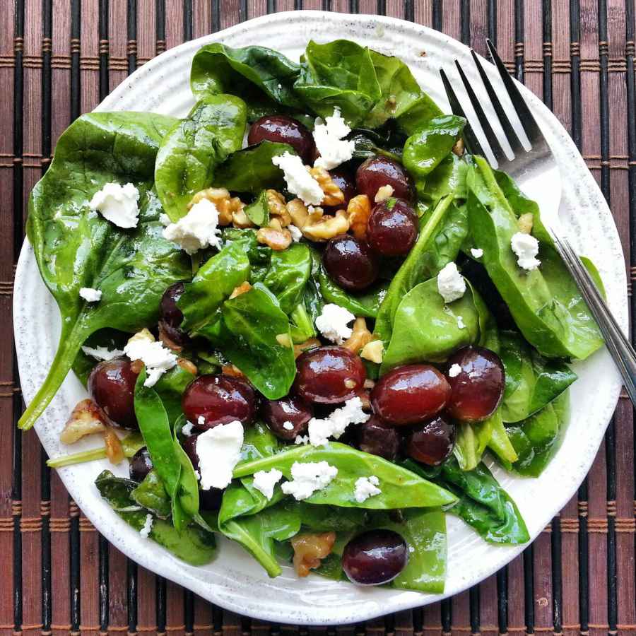 Dùng một cái bát, trộn rau chân vịt với nho, gừng và các thành phần nguyên liệu khác, trộn đều và thưởng thức