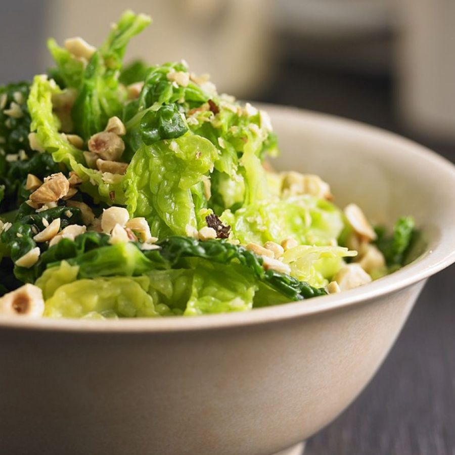 Dùng một cái bát, trộn bắp cải Savoy với trái bơ và các nguyên liệu khác, trộn đều và thưởng thức.