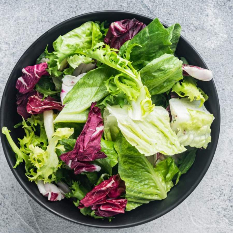 Dùng một chiếc bát để trộn rau xà lách Romaine với hành lá và các thành phần nguyên liệu khác, trộn đều và thưởng thức