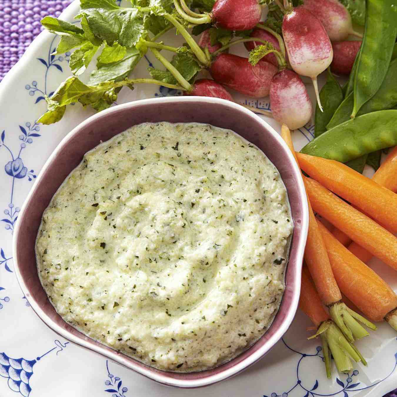 Cho bí ngòi vào máy xay thực phẩm cùng với phần dầu ăn còn lại, nước cốt chanh và hạt mè để xay cho đến khi mịn