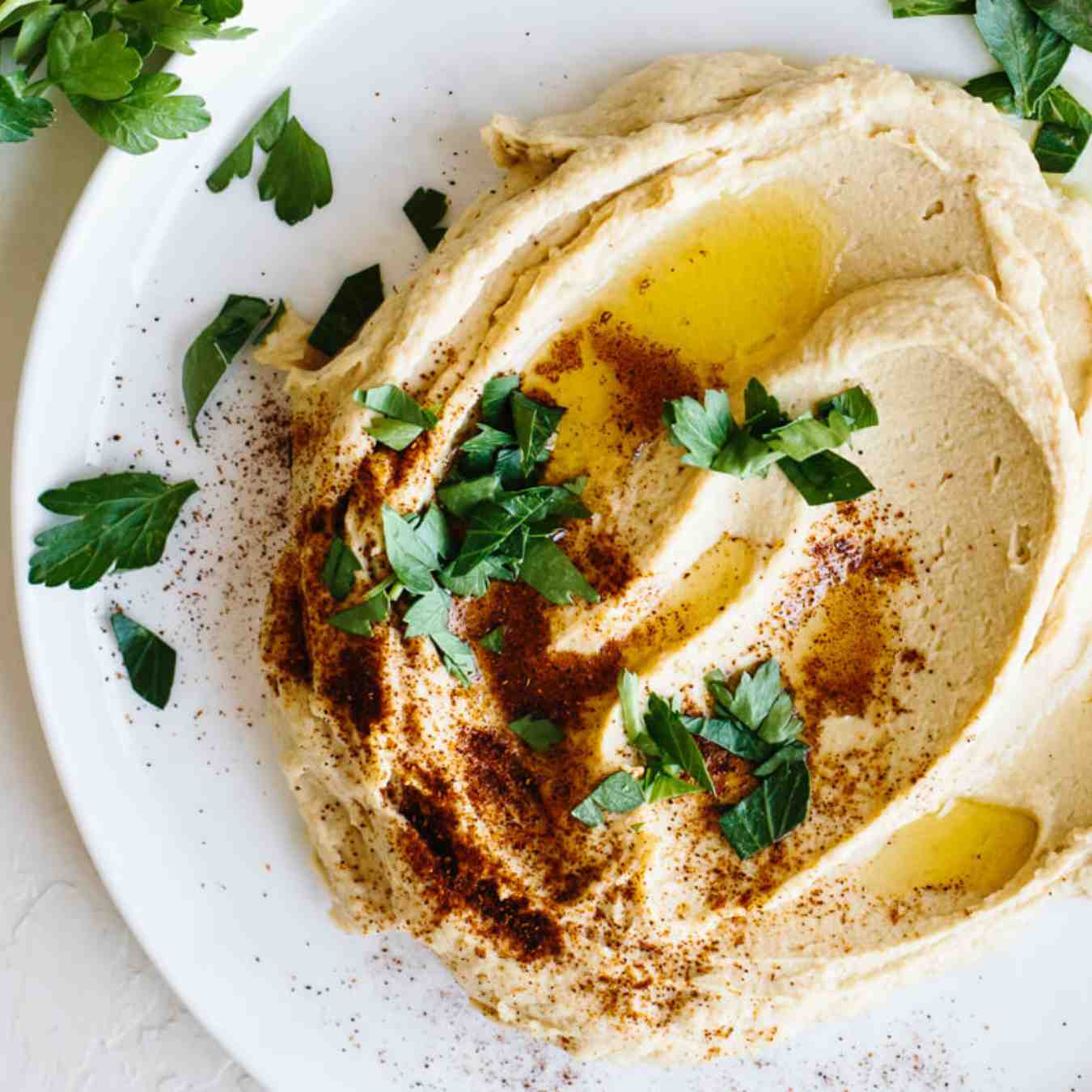 Dùng máy xay thực phẩm, trộn đều bí ngòi với muối, tiêu, dầu, nước cốt chanh, tỏi, bơ mè Tahini và thì là