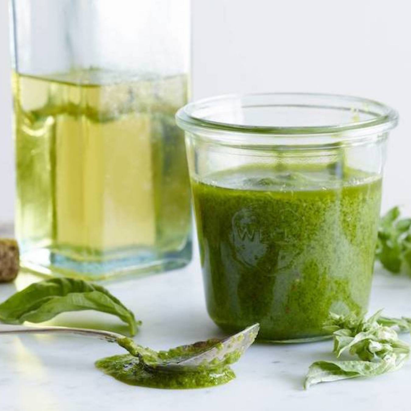 Trộn giấm, tỏi và muối với nhau trong một cái bát nhỏ, sau đó đánh với dầu ăn