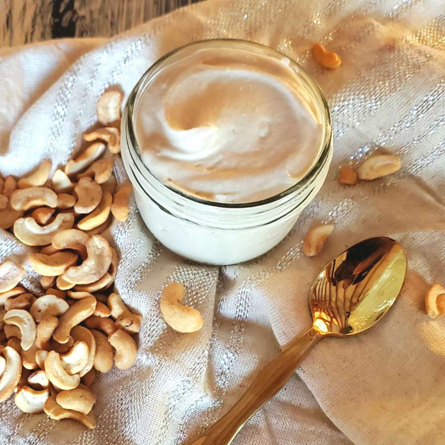 Dùng một chiếc nồi, trộn kem dừa với hạt điều, phô mai hạt điều và các nguyên liệu khác, khuấy đều, nấu trên lửa vừa trong 30 phút rồi cho vào máy xay thực phẩm
