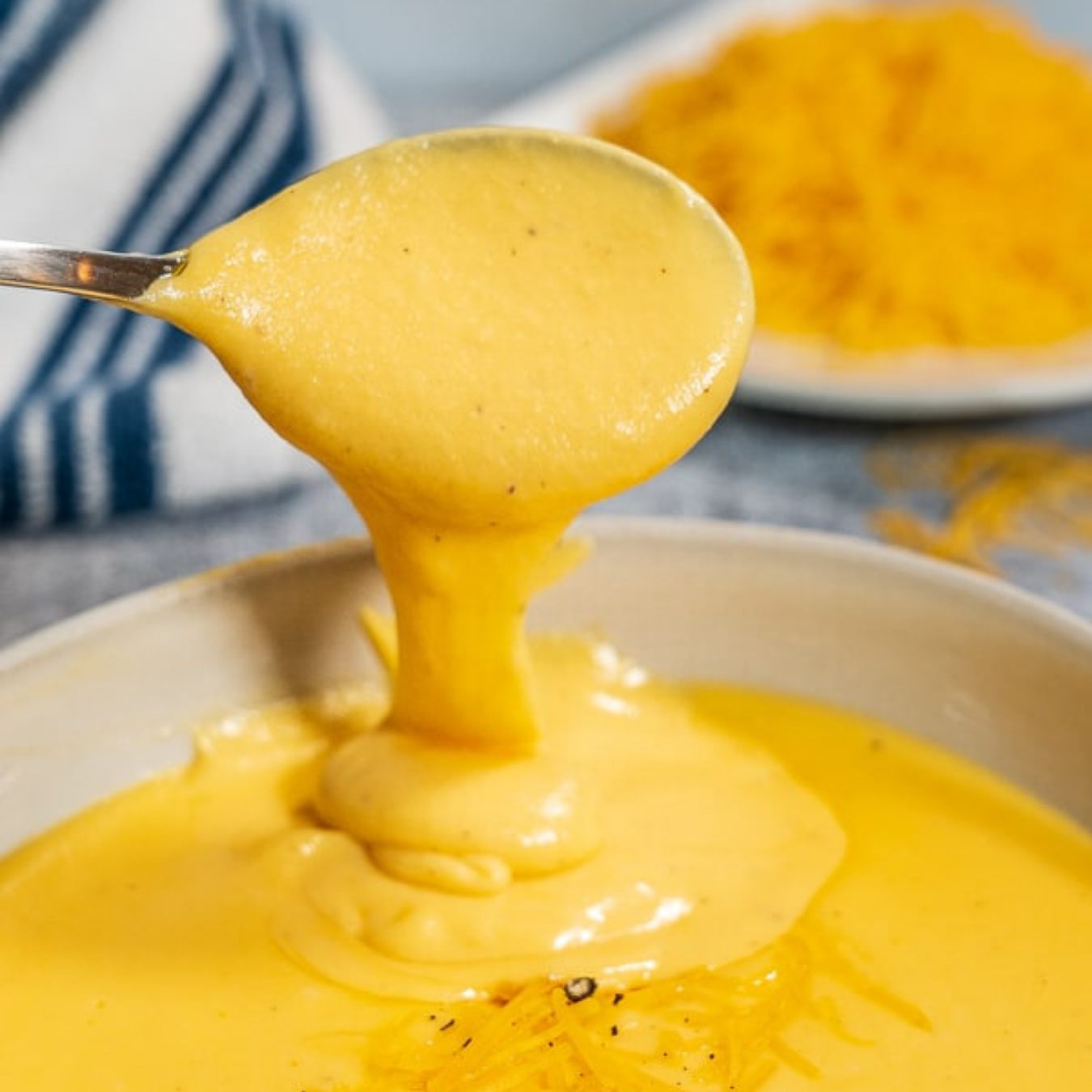 Sau đó, bắc chảo ra khỏi bếp, cho phô mai Cheddar vào, trộn đều và đun nóng lại chảo trong 3-4 phút