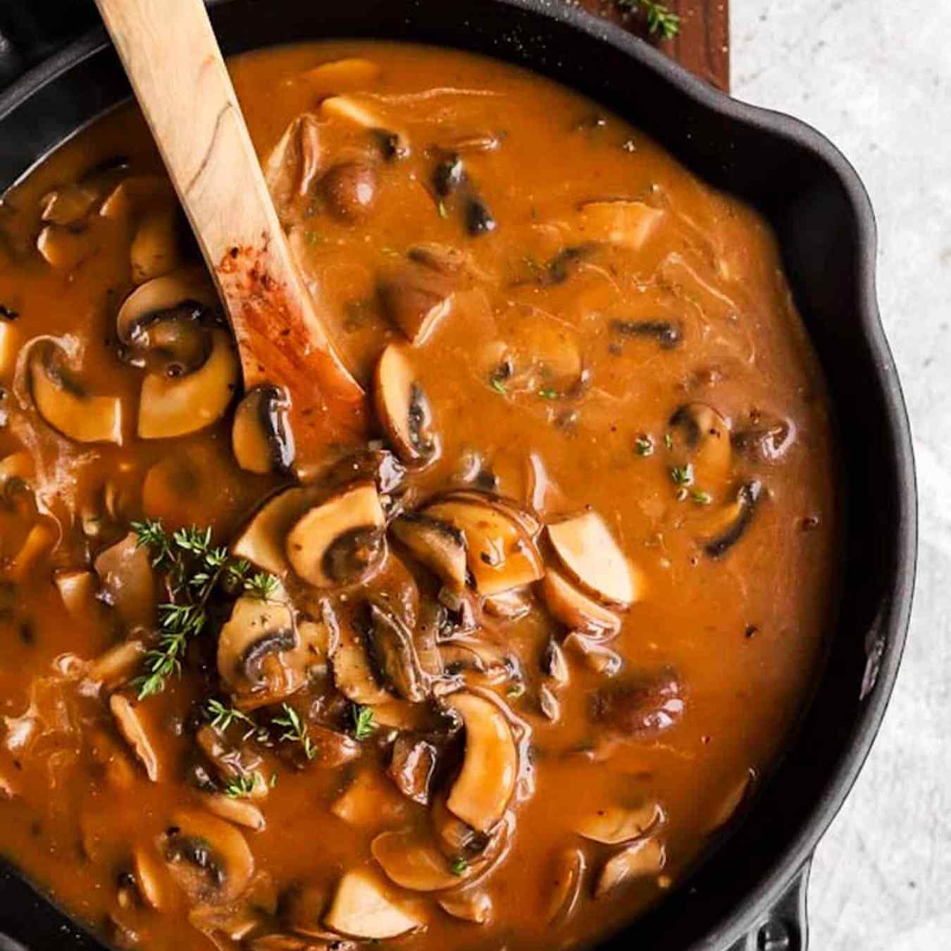 Dùng sốt nấm để rưới lên bí spaghetti, khoai lang nghiền hoặc sườn lợn nướng