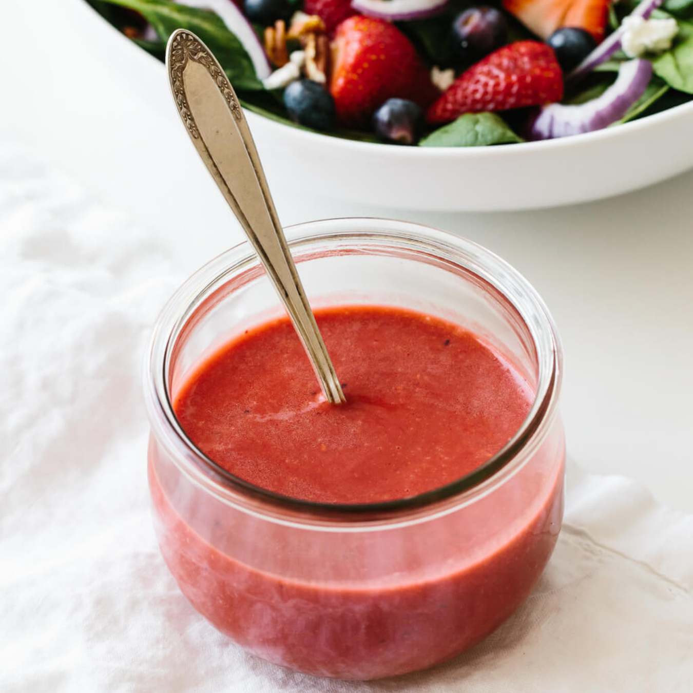 Trộn giấm, quả mâm xôi, mù tạt và muối trong máy xay thực phẩm (hoặc máy xay sinh tố) cho đến khi mịn. Khi lưỡi dao đang chạy, từ từ đổ thêm dầu ăn cho đến khi các nguyên liệu được xay trộn đều