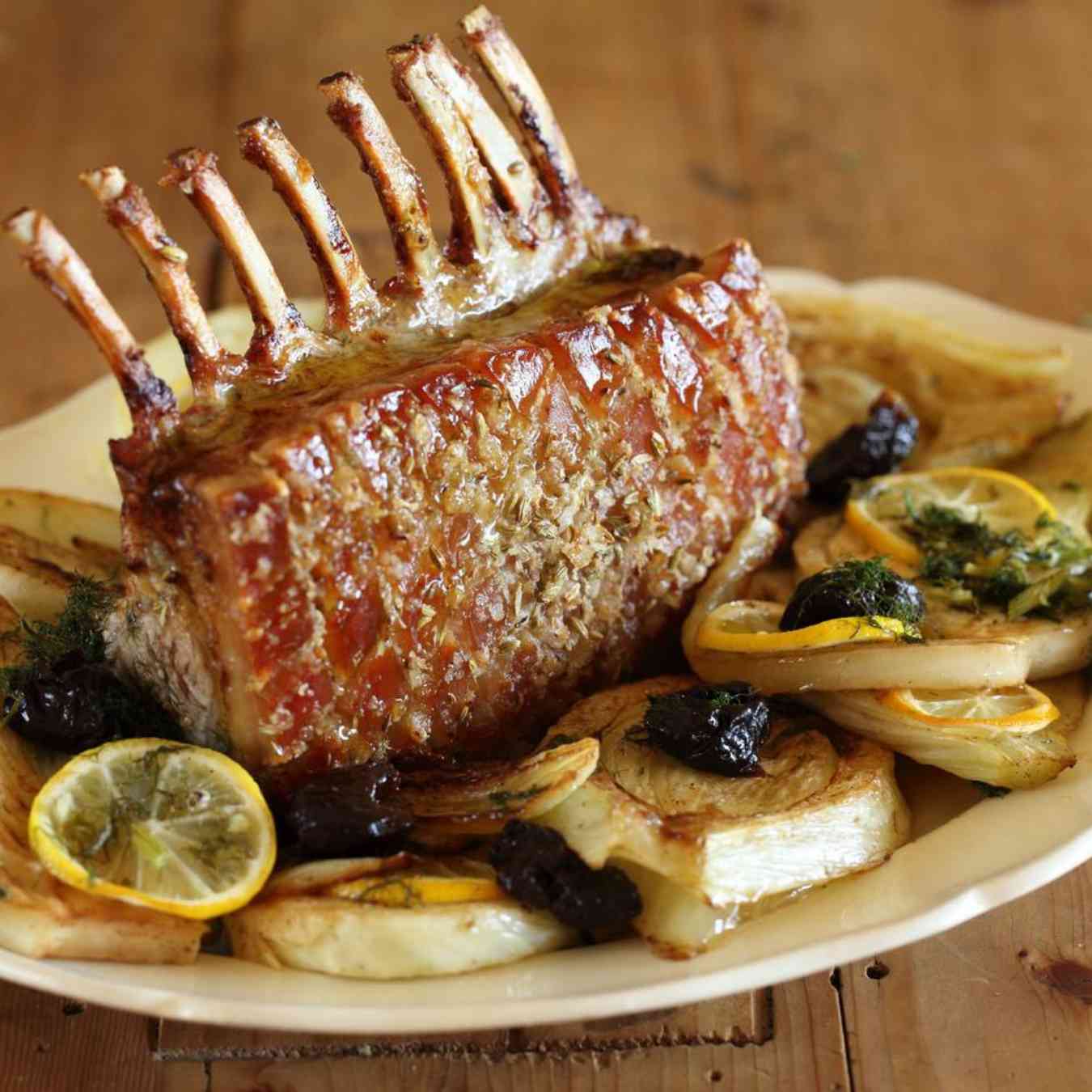 Cho thịt cừu vào khay nướng cùng với thì là và mận khô rồi cho vào lò nướng trong 20 phút