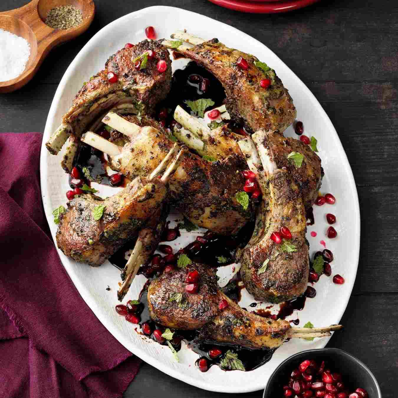 Lấy sườn cừu ra khỏi lò, chia ra đĩa, rưới nước sốt nam việt quất lên trên và thưởng thức