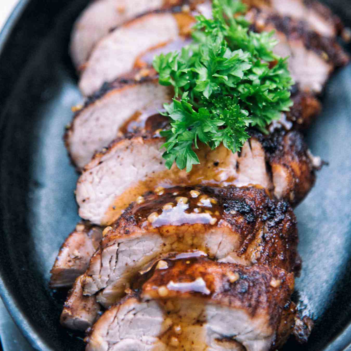 Chia sườn vào đĩa. Thưởng thức cho bữa trưa