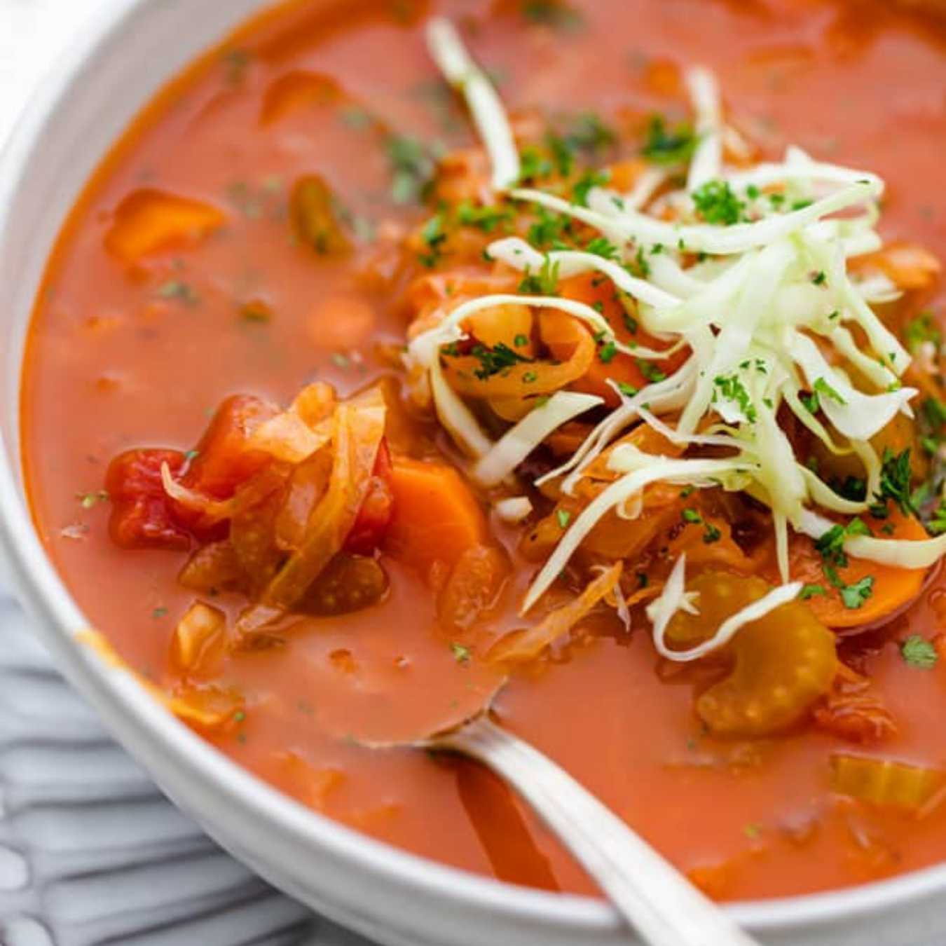 Thêm bắp cải, nước cốt rau và các nguyên liệu khác vào, khuấy đều và nấu ở lửa vừa trong 20 phút nữa