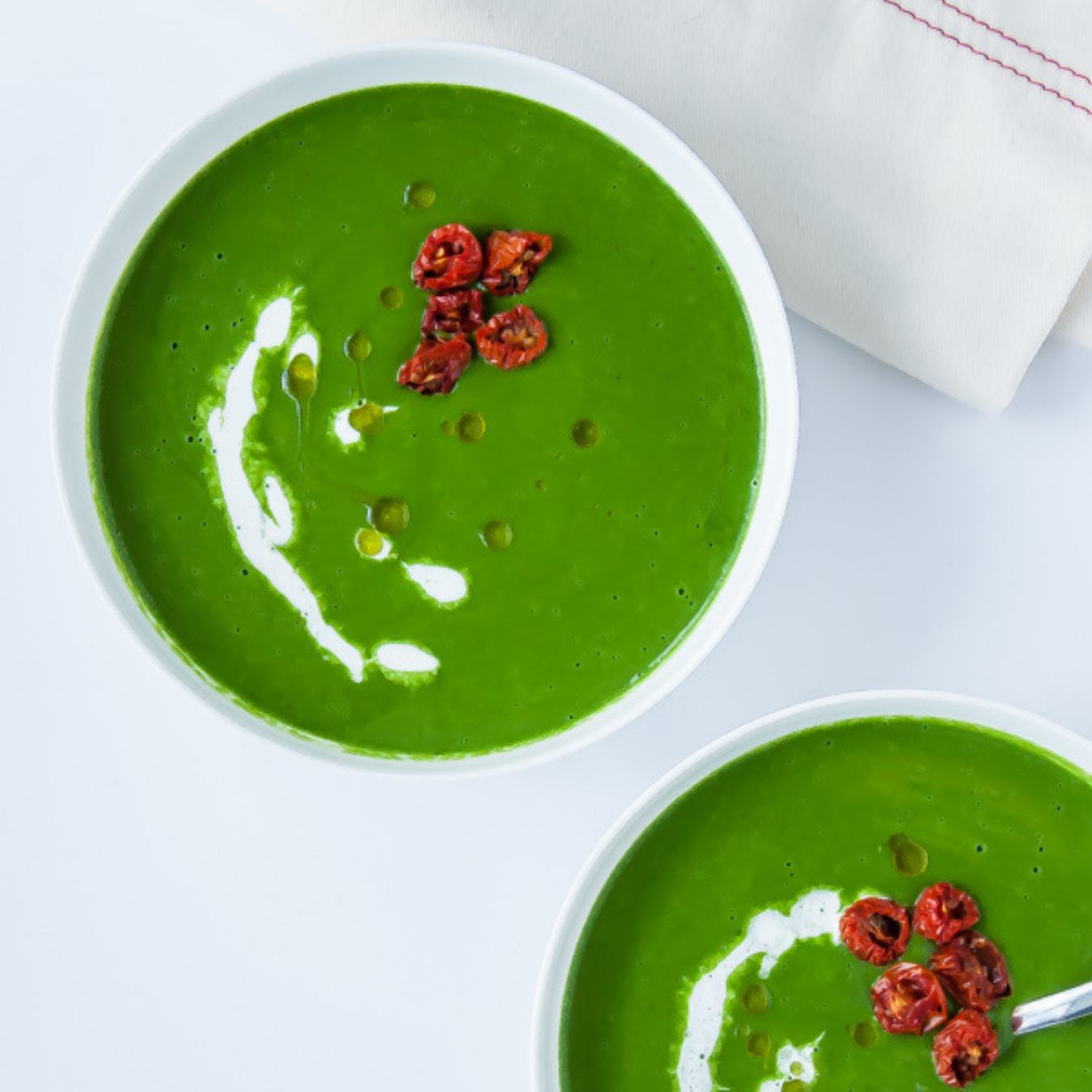 Xay súp bằng máy xay ngâm, chia vào các bát và thưởng thức
