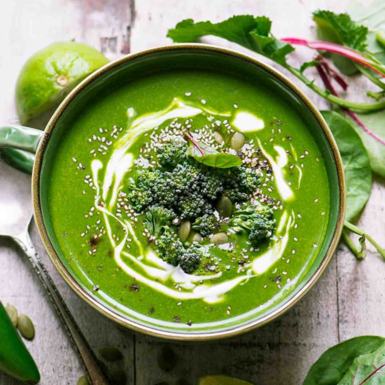 Thêm súp lơ và lá nguyệt quế vào, đảo đều và nấu trong 5 phút. Thêm cải xoong và rau chân vịt, đảo đều và nấu trong 3 phút