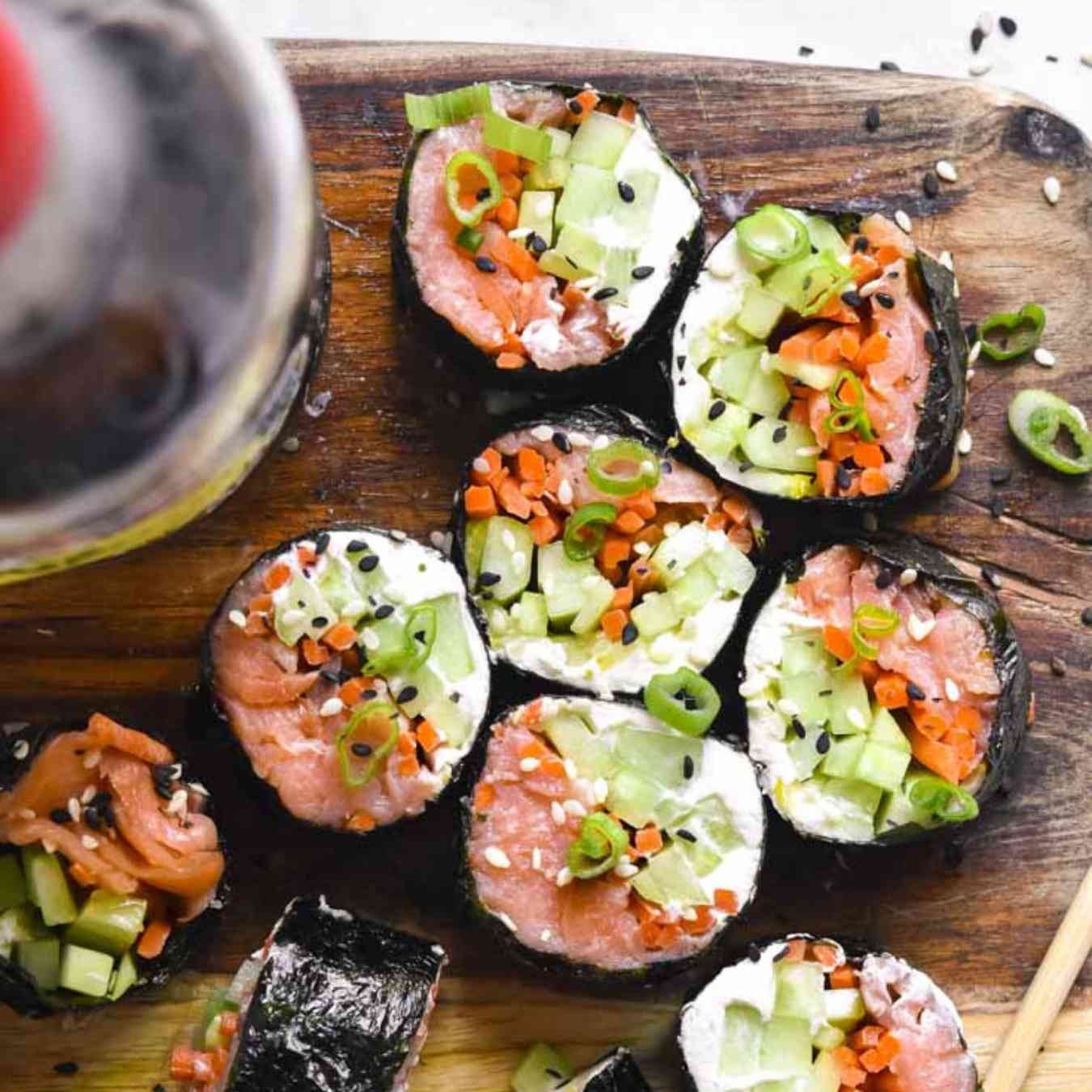 Cuộn từng lá rong biển lại thành cuộn sushi
