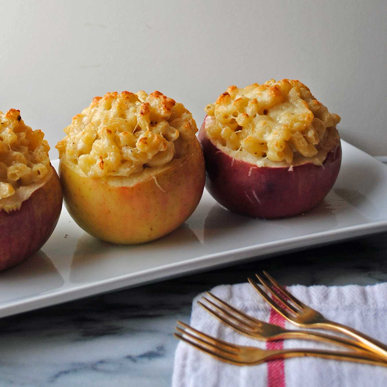 Nhồi 3 oz phô mai dê vào trong mỗi quả táo và rắc bột quế lên trên