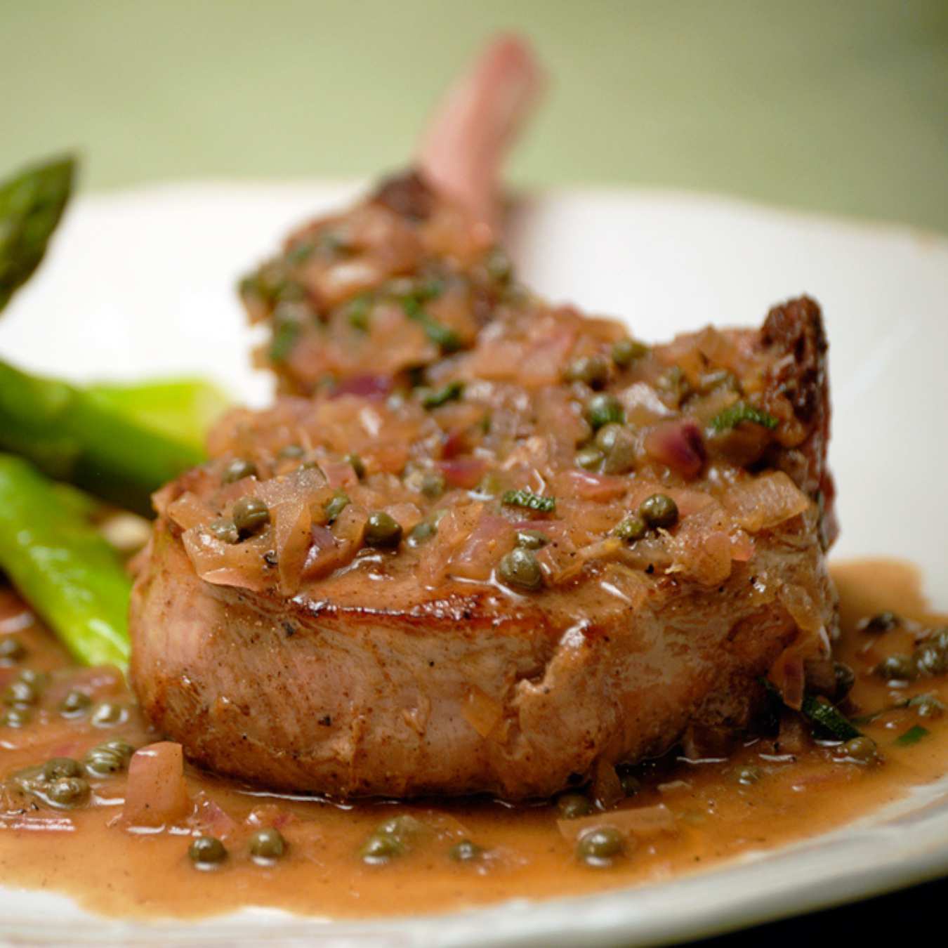 Rắc muối và hạt tiêu lên thịt bê và áp chảo mỗi mặt trong 1 phút. Để qua một bên