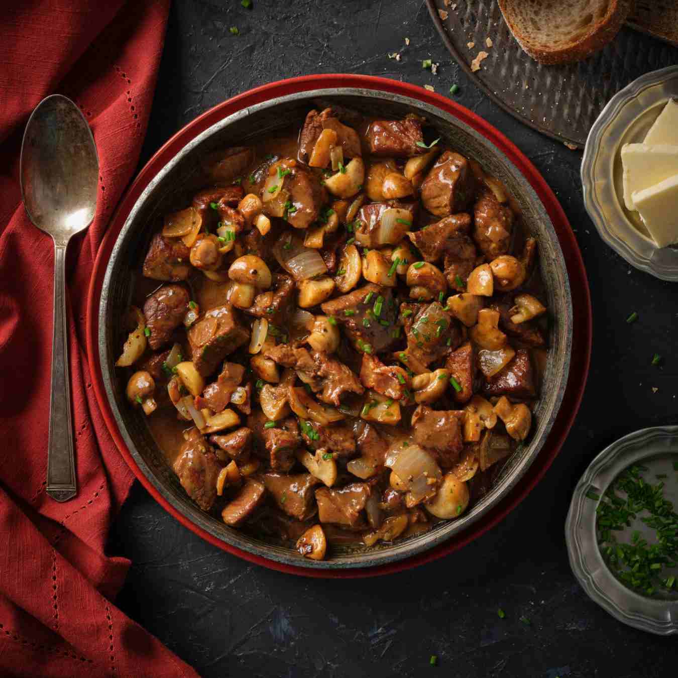 Đun nóng nồi với dầu ở lửa mức trung bình cao, cho thịt bê vào, đảo đều và xào cho thịt bê chín vàng trong vài phút