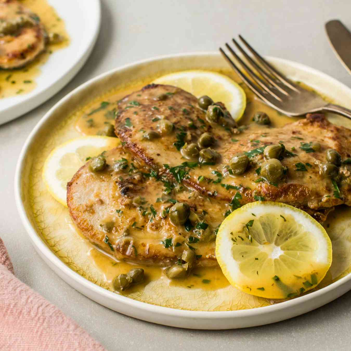 Đun nóng chảo với ½ số bơ ở lửa trung bình cao, cho thịt bê vào, nêm muối và tiêu, nấu chín trong 1 phút cho mỗi bên và chuyển sang đĩa