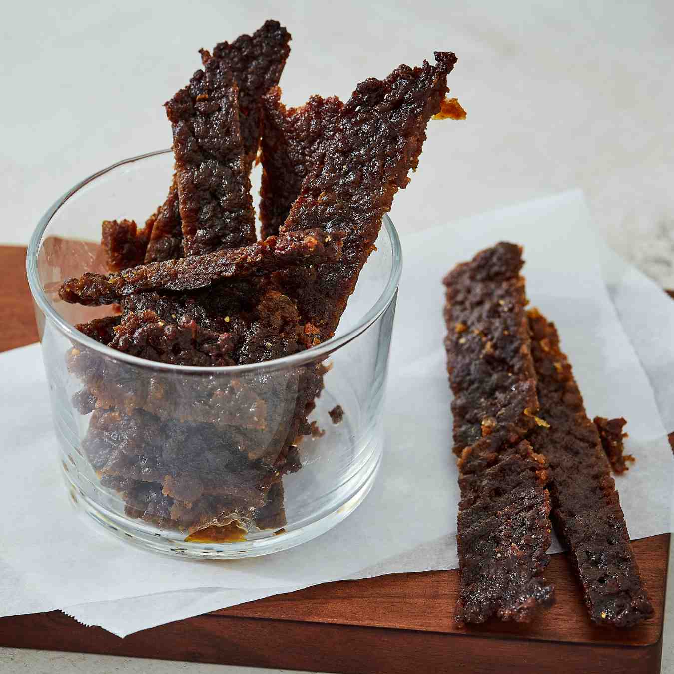 Trải thịt bò lên khay, cho vào lò nướng ở nhiệt độ 185ºC (370ºF), nướng trong 4 giờ. Dọn ra bát và thưởng thức