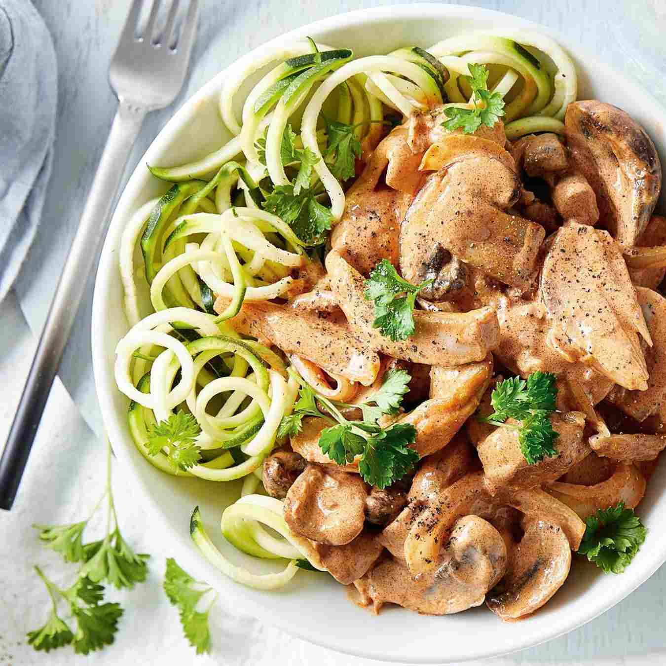 Cho gà vào nồi nấu chậm. Thêm muối, tiêu, hành, tỏi, nấm, nước cốt dừa, hạt cần tây, nước cốt gà, ½ số mùi tây và húng tây