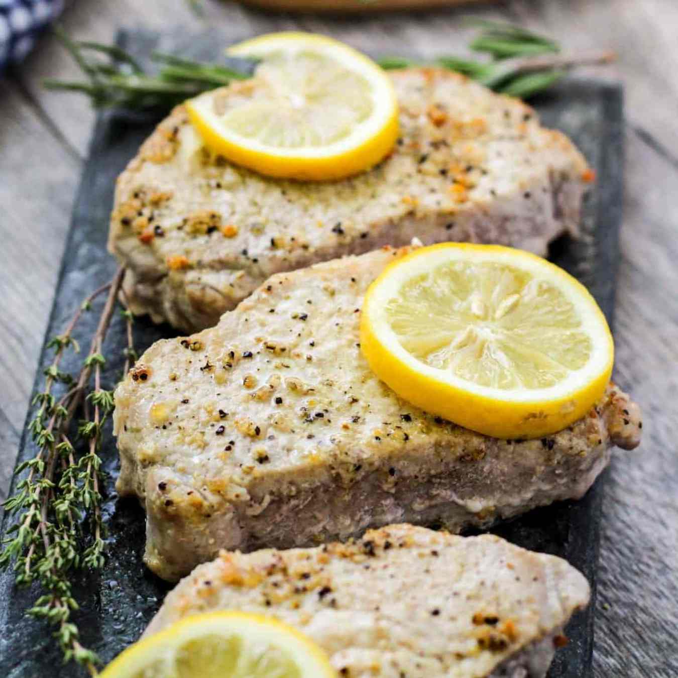 Đun nóng chảo với 2 tbsp bơ và 2 tbsp dầu ở lửa trung bình cao, thêm thịt heo vào, nêm chút muối và tiêu, rán cho đến khi chín vàng cả hai mặt rồi chuyển ra đĩa
