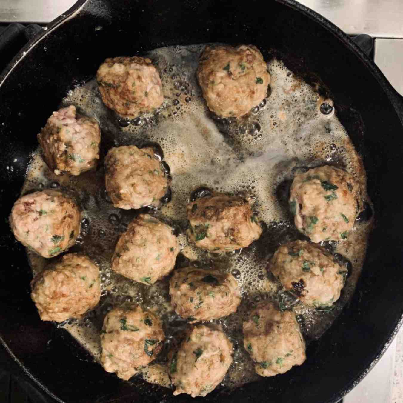 Chiên thịt viên trong dầu cho đến khi chín vàng