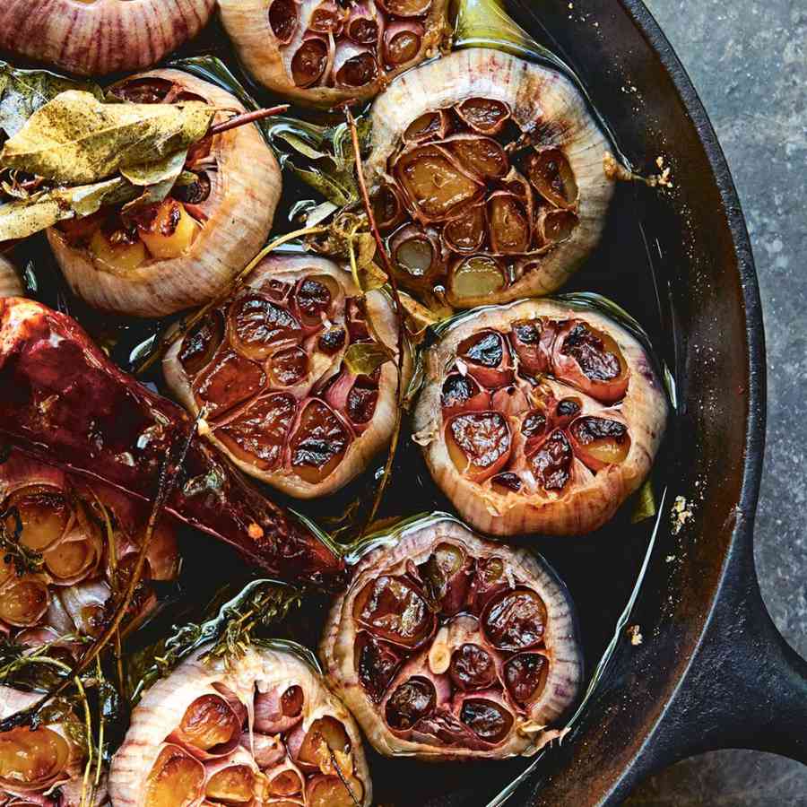 Làm nóng chảo với dầu ăn trên lửa vừa, cho tỏi, ớt bột và các nguyên liệu khác vào áp chảo trong 20 phút (đảo tỏi liên tục để tránh bị cháy)