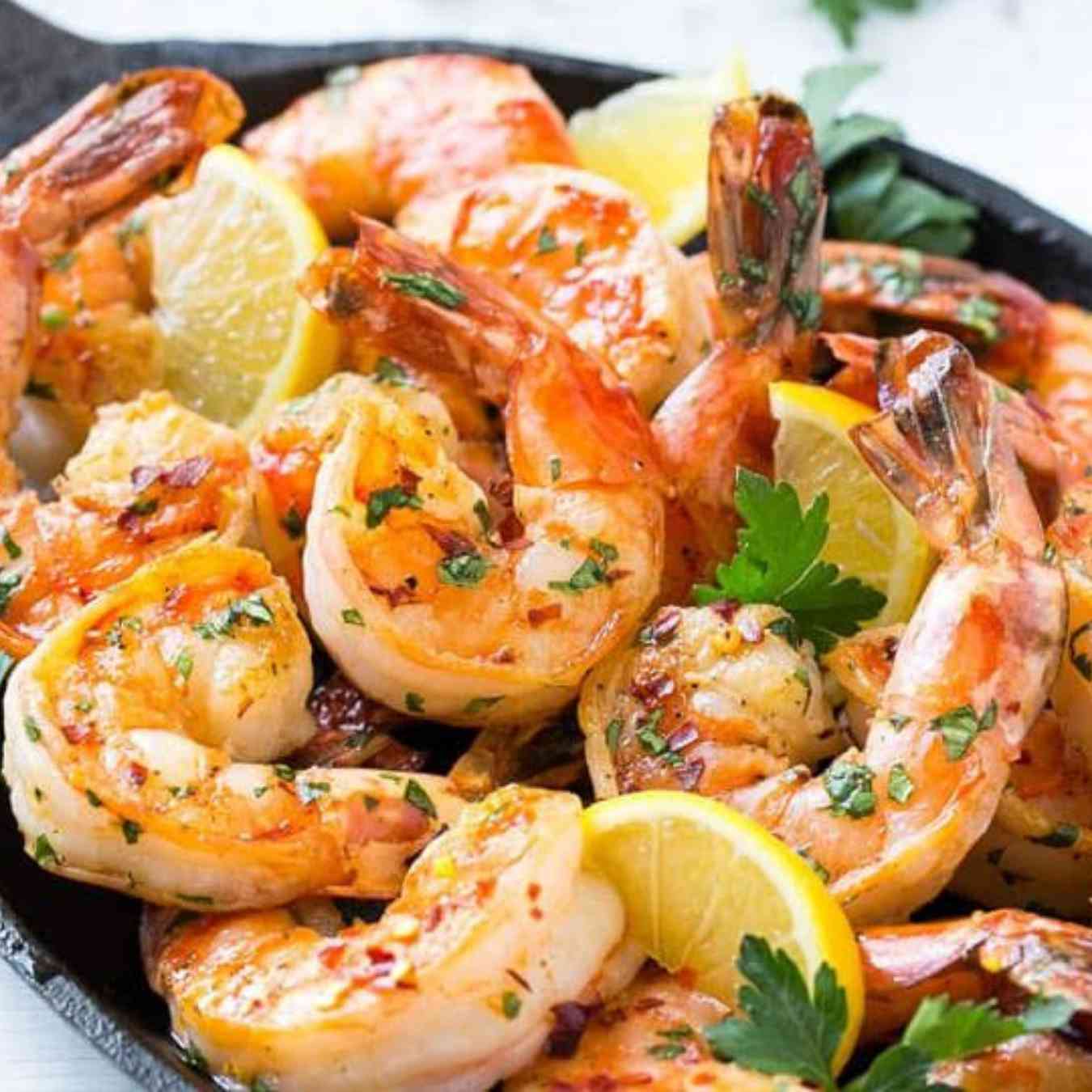 Cho tôm vào chảo nướng và phết bơ tỏi sau đó rắc thêm bột tỏi và tiêu chanh