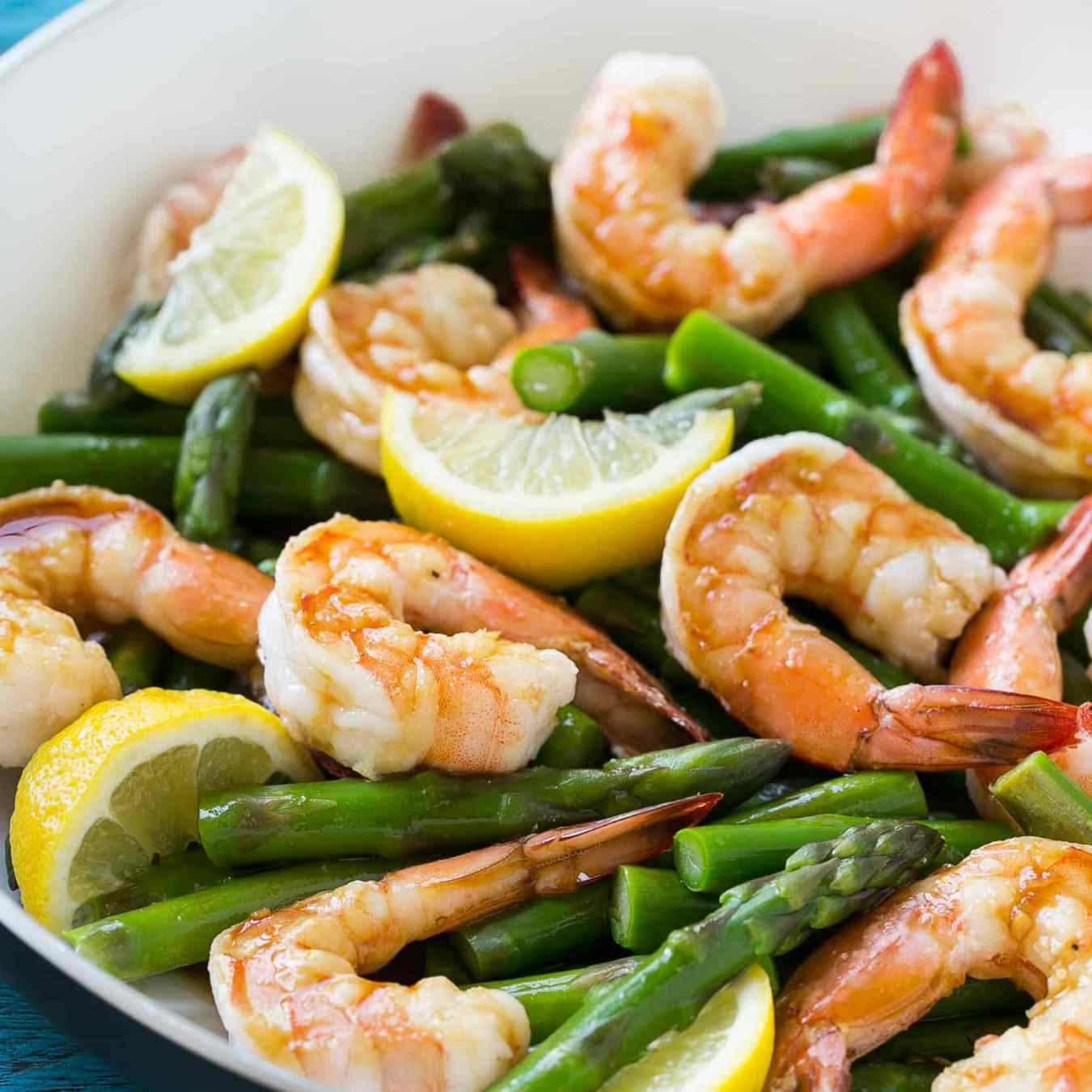 Thêm măng tây vào hỗn hợp và tôm, đảo nhẹ