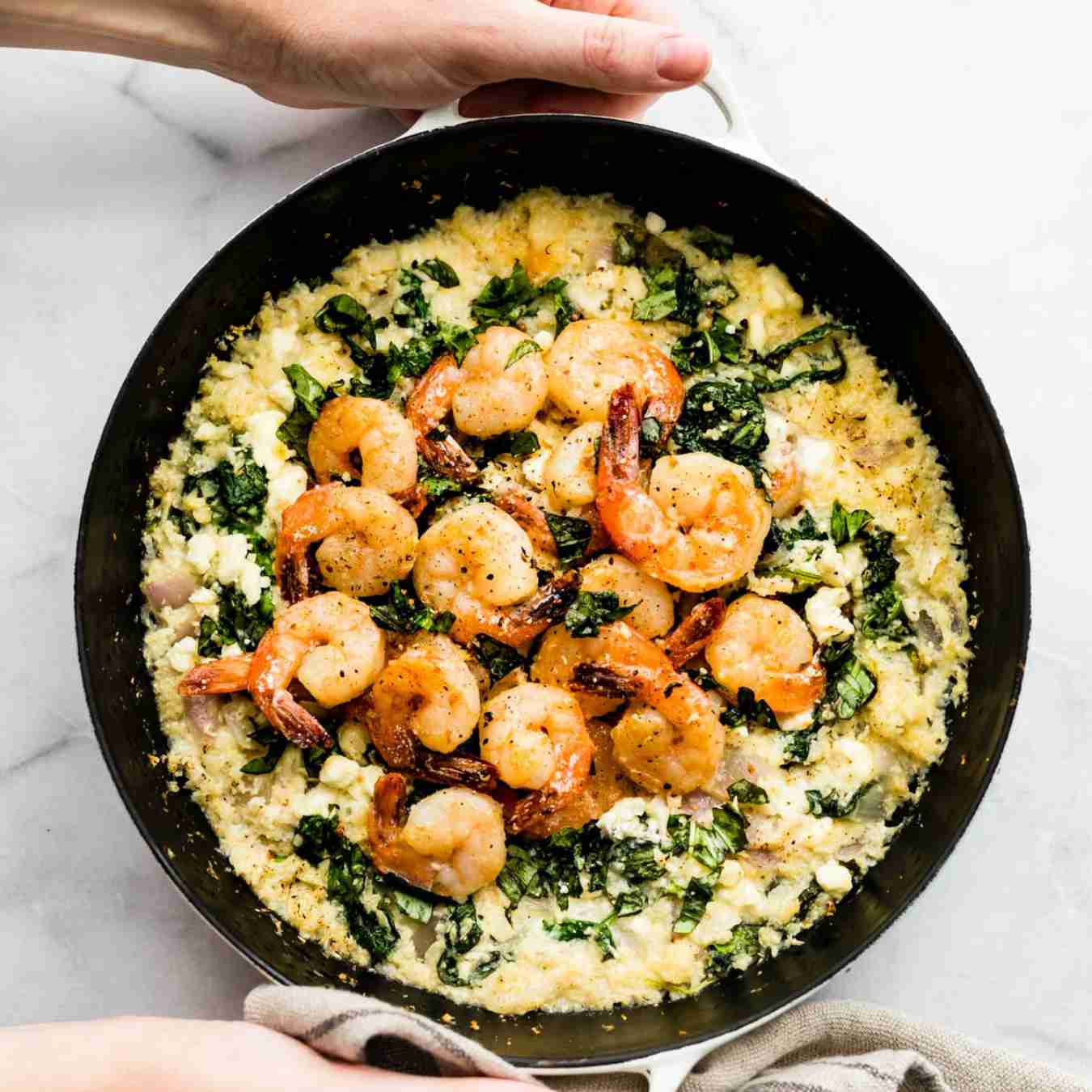 Đun nóng một chảo khác với 1 tbsp mỡ thịt heo xông khói ở lửa mức trung bình cao, cho tôm vào, xào mỗi mặt 2 phút rồi chuyển ra bát