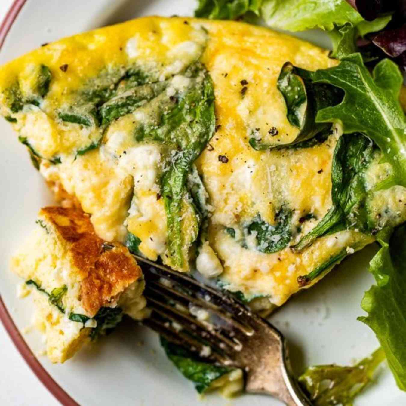 Ép ráo nước rau chân vịt và sau đó xếp rau chân vịt vào bát. Dùng một chiếc bát khác, trộn trứng với muối, tiêu, nhục đậu khấu, tỏi vào và đánh bông