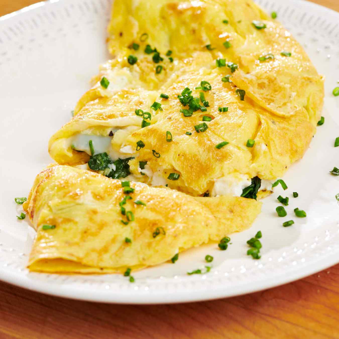Rắc phô mai và phết sốt Pesto lên trứng tráng, gấp đôi lại, đậy nắp chảo và để nấu trong 5 phút. Chuyển trứng tráng ra đĩa và thưởng thức