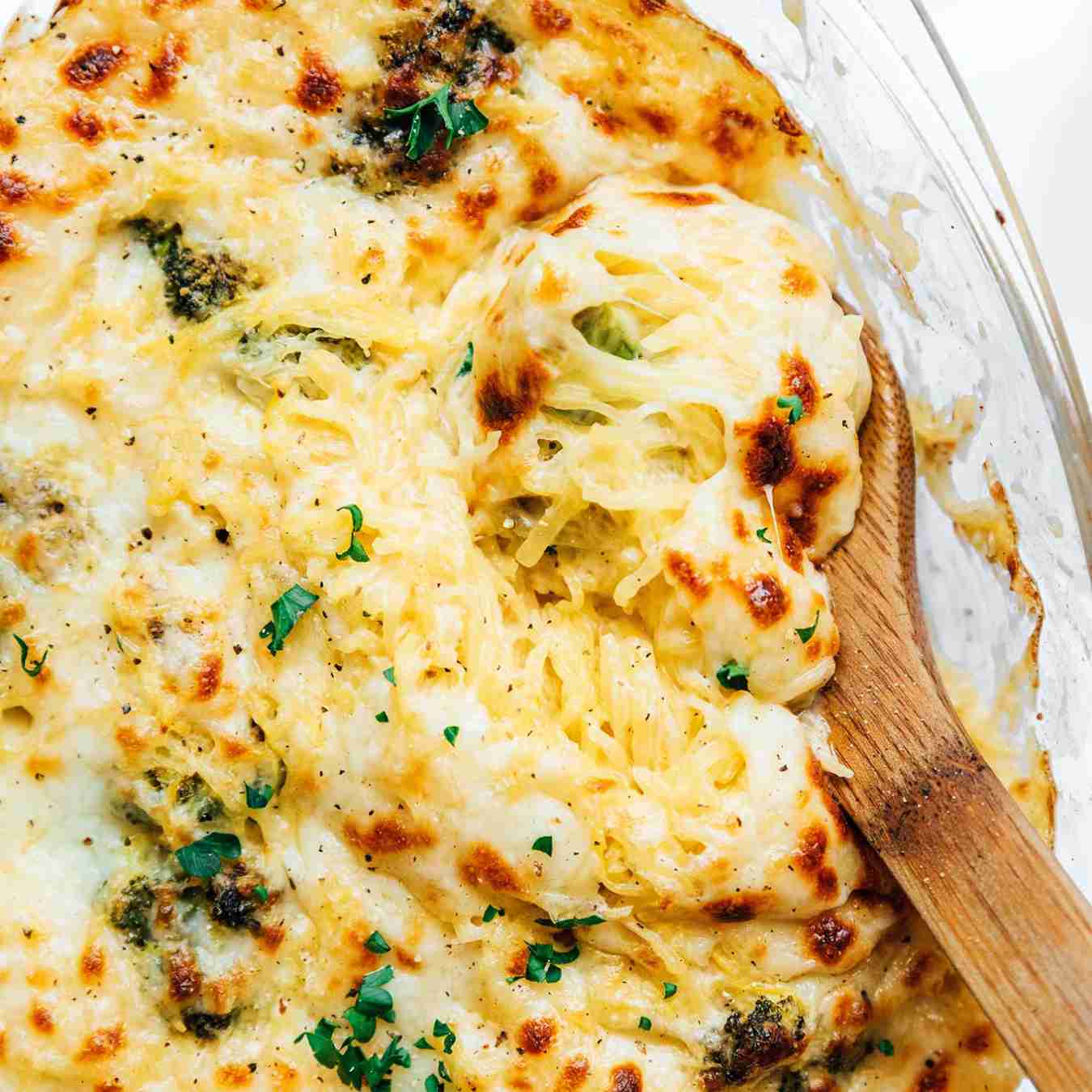 Phủ phô mai Mozzarella bào lên trên, cho vào lò nướng ở nhiệt độ 190ºC (375ºF) và nướng trong 30 phút