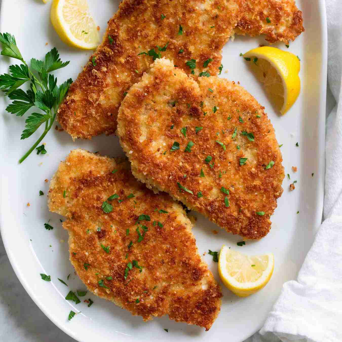 Nêm gà với muối, tiêu và nhúng từng miếng vào trứng, sau đó nhúng vào hỗn hợp phô mai