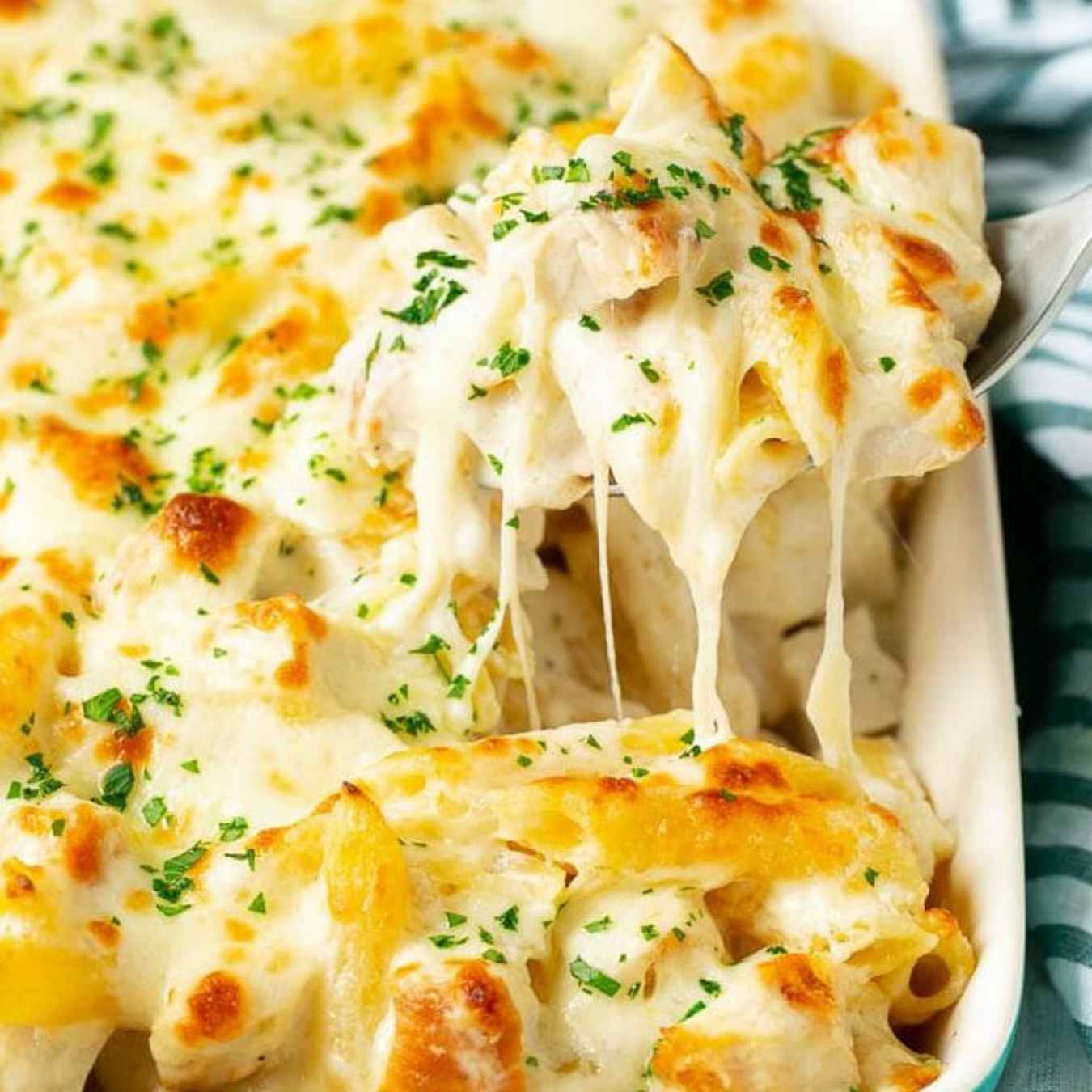 Thêm thịt heo xông khói, tỏi, thêm muối, hạt tiêu, kem phô mai, phô mai Cheddar, phô mai Muenster và phô mai Provolone và trộn