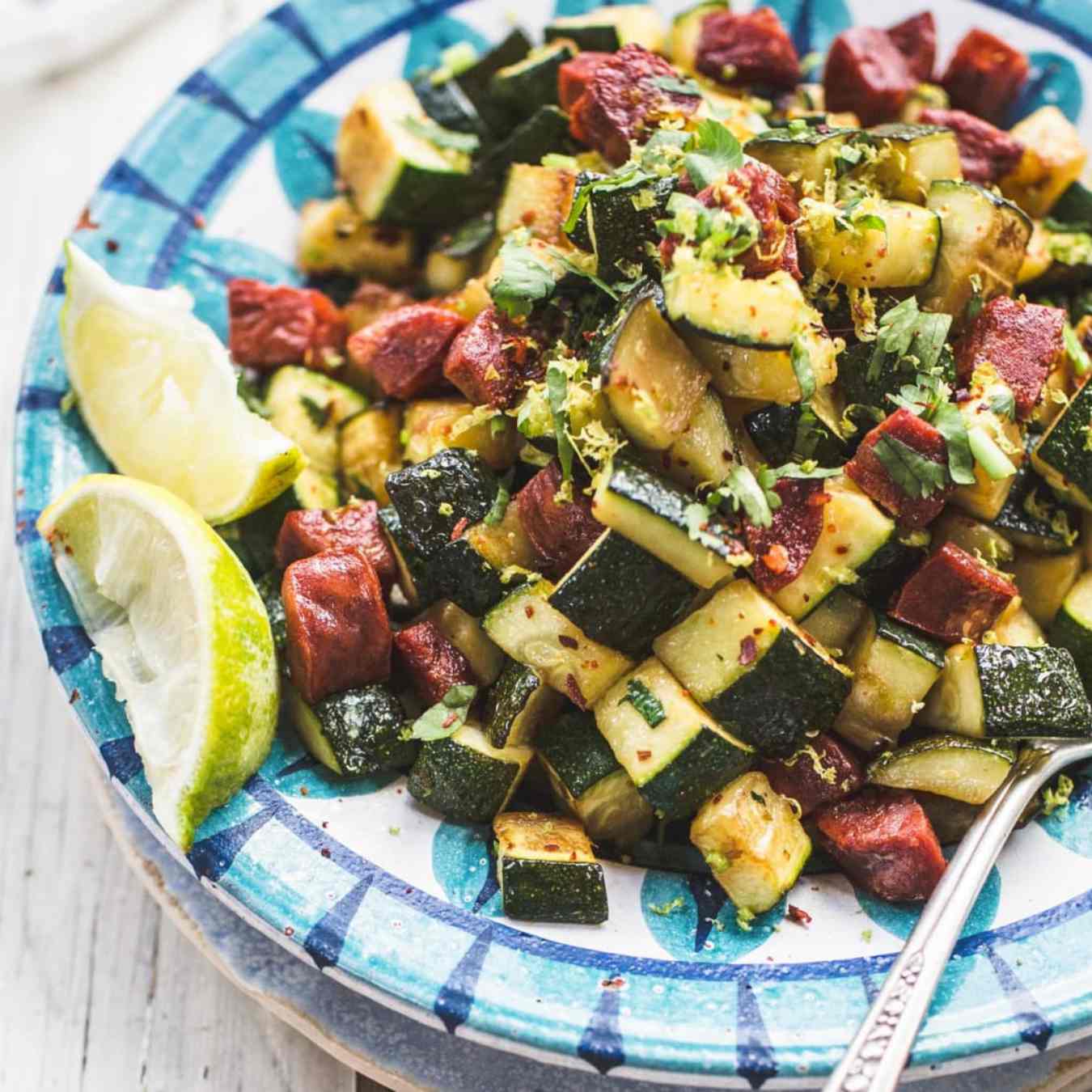 Cho bí ngòi và mùi tây vào và nấu trong 12 phút