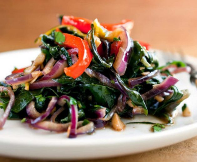 Cải cầu vồng áp chảo với thịt heo
